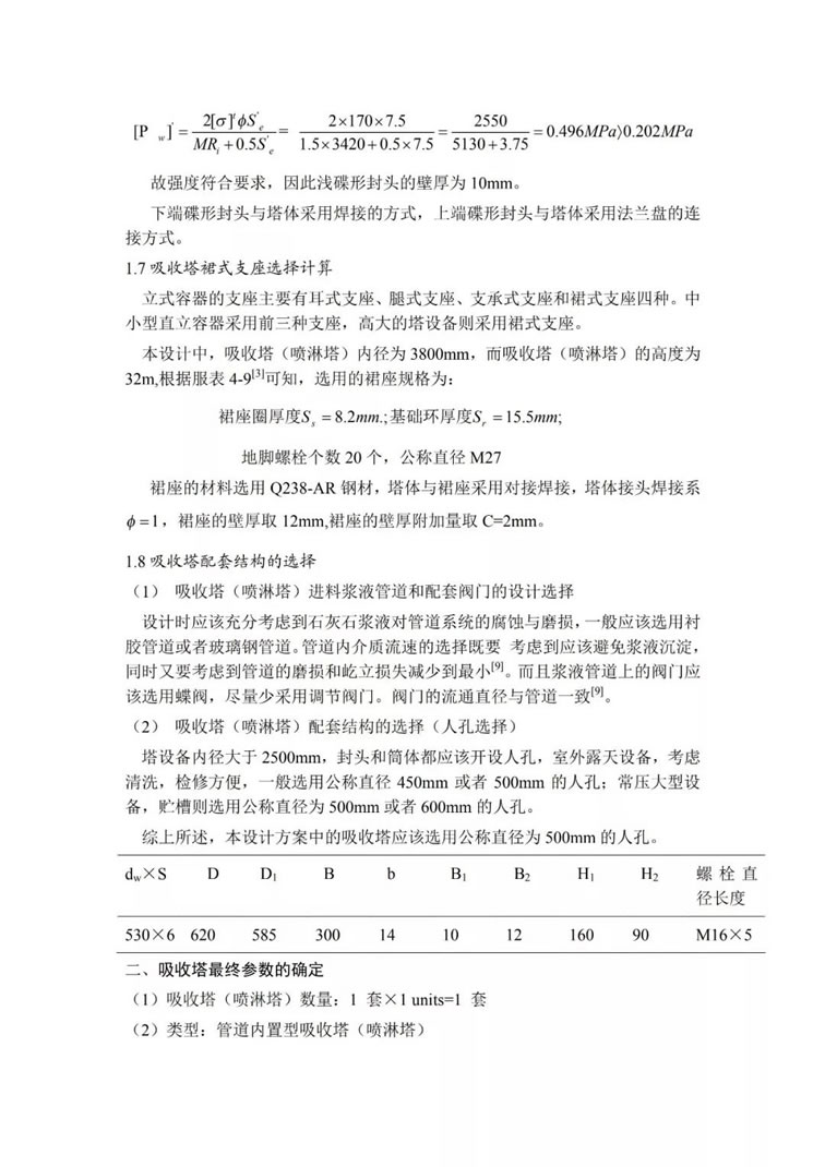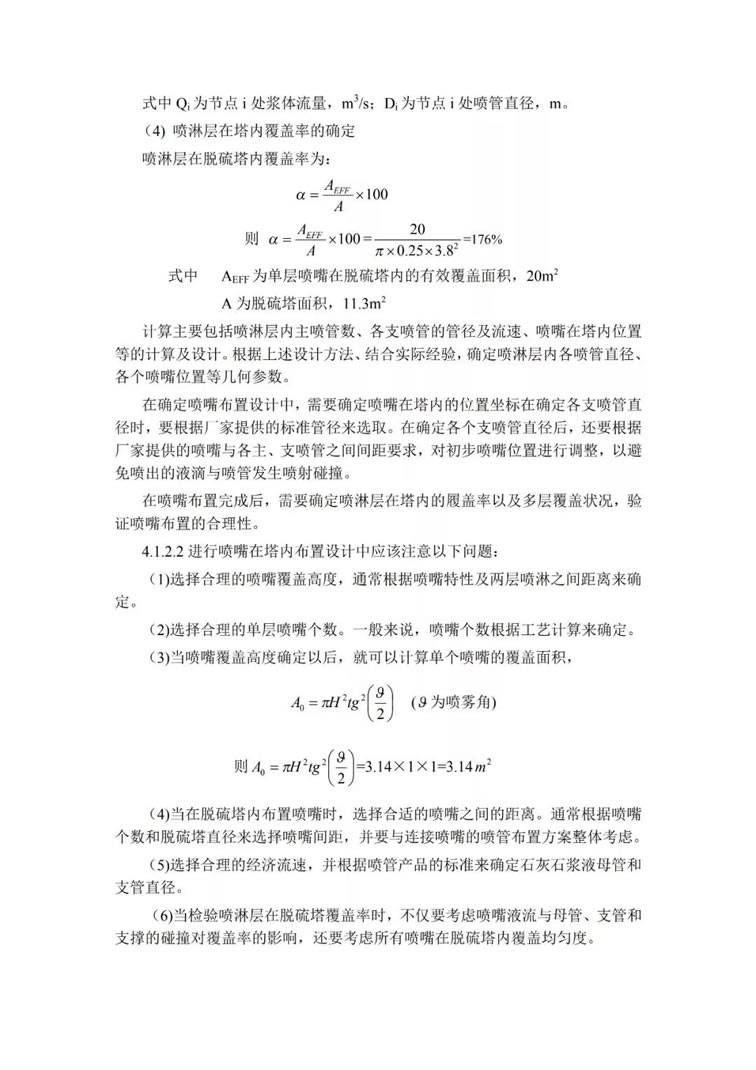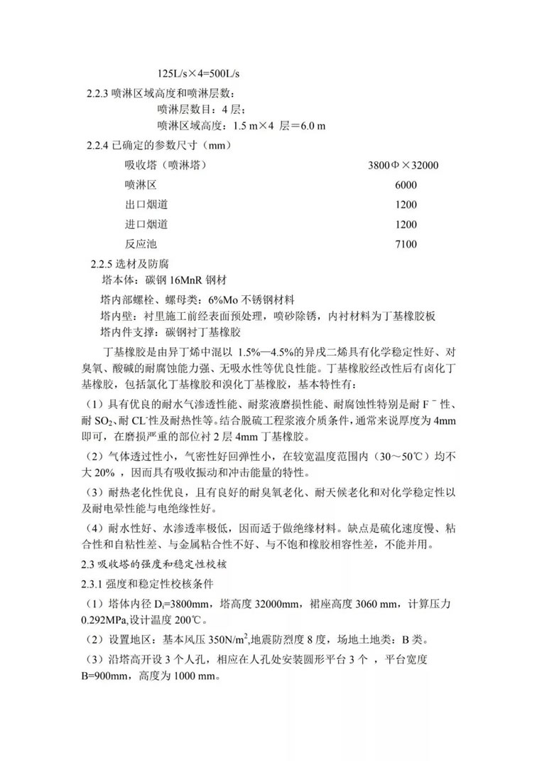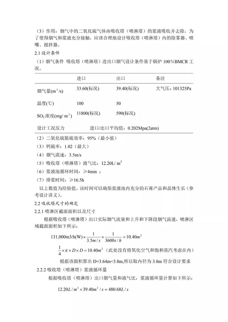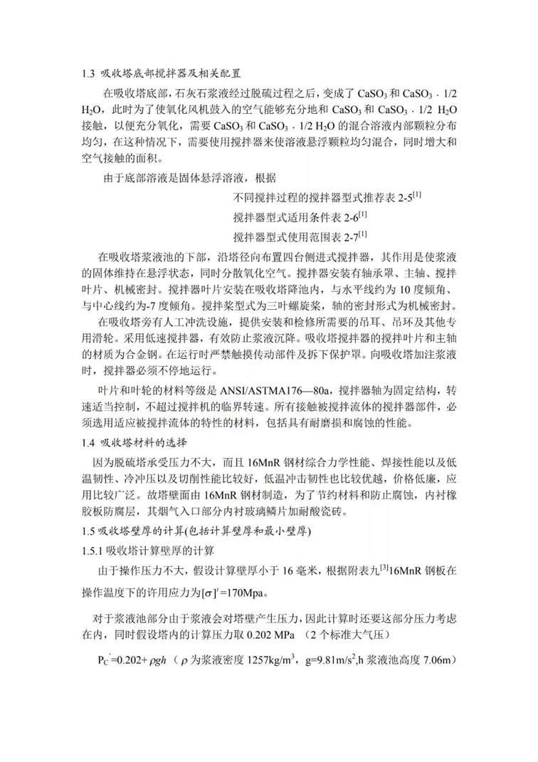 吸收塔是脫硫裝置的核心,是利用石灰石和亞硫酸鈣來脫去煙氣中二氧化硫氣體的主要設備,要保證較高的脫硫效率,必須對吸收塔系統進行詳細的計算,包括吸收塔的尺寸設計,塔內噴嘴的配置,吸收塔底部攪拌裝置的形式的選擇、吸收塔材料的選擇以及配套結構的選擇(包括法蘭、人孔等)。